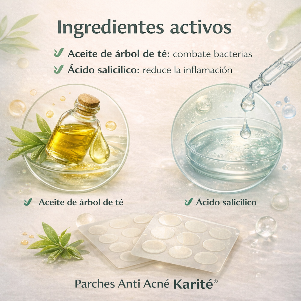 Los parches anti acné Karite están formulados para tratar directamente las imperfecciones de la piel. Gracias a su composición especializada, ayudan a eliminar el exceso de sebo en los granitos y puntos negros, acelerando el proceso de cicatrización sin dañar la piel ni dejar marcas.