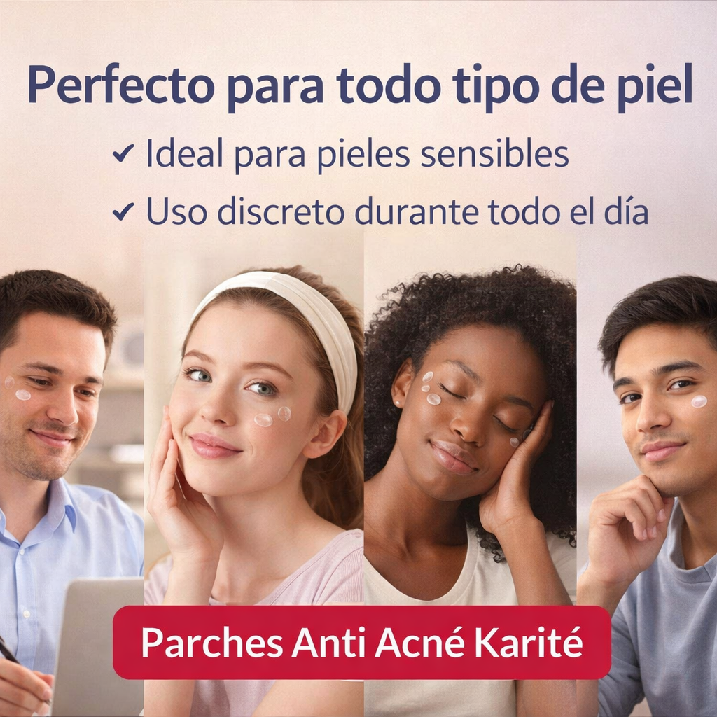 No necesitas tratamientos invasivos ni costosos. Nuestros Parches Anti Acne Karite son la solución rápida y accesible para cuidar tu piel desde la comodidad de tu hogar. No más citas ni procedimientos complicados, solo un cuidado diario que puede hacer la diferencia.