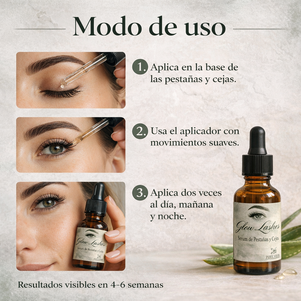 Descubre Glow Lashes: Un Sérum Natural que Fortalece, Nutre y Promueve el Crecimiento de Pestañas y Cejas 💧